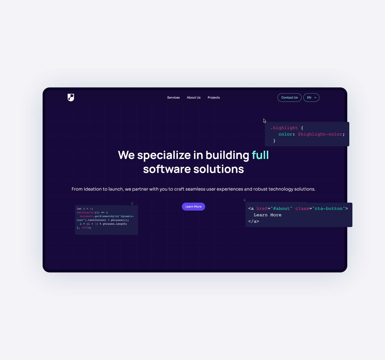 We developed a clean, confident brand identity that positions Presidio Codeworks as a credible and forward-thinking partner. We then designed and built their website in Webflow, focusing on clear structure, strong storytelling, and conversion-driven layouts. The result is a scalable digital presence that clearly communicates Presidio Codeworks’ expertise and makes it easy for clients to understand, trust, and engage with them.